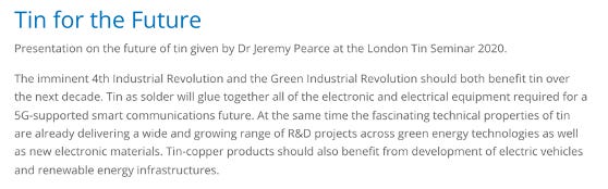 Rio Tinto - praktično največji metal miner na svetu, je skupaj z MIT naredil research glede na bodoče potrebe in ugotovil, da je od boga pozabljena surovina esencialnega pomena, če želijo zelenci dobiti električna vozila, veternice, solarne panele, robote in nenazadnje 5g ter internet of things.