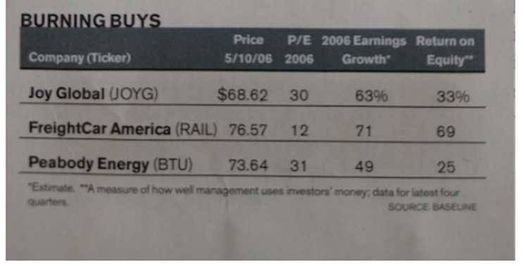 Leta 2006 je bil Peabody energy (premog v ZDA) rated kot "must buy" pri P/E 31 !