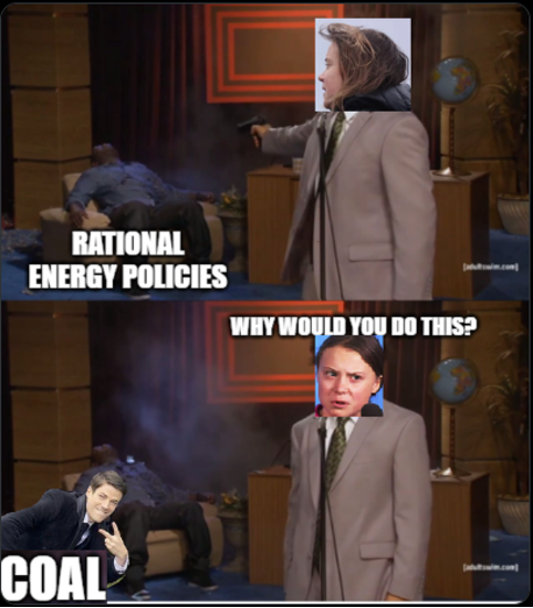 Sedaj razumete, zakaj povečujejo proizvodnjo premoga in zakaj je stvar lahko zelena le po barvi magičnega papirja na katerem je napisano.