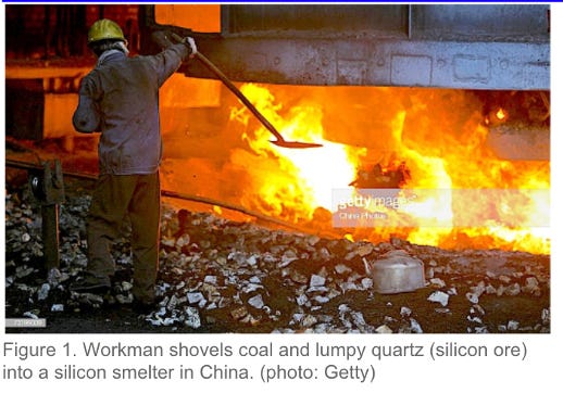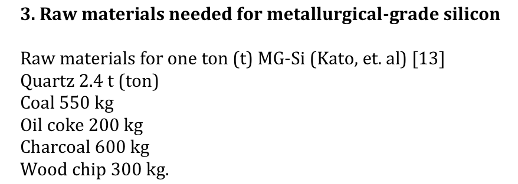 Torej, silica sands-quartz (SiO2) + premog (koks) na 1900*C = silikon(Si) ->ni alternative