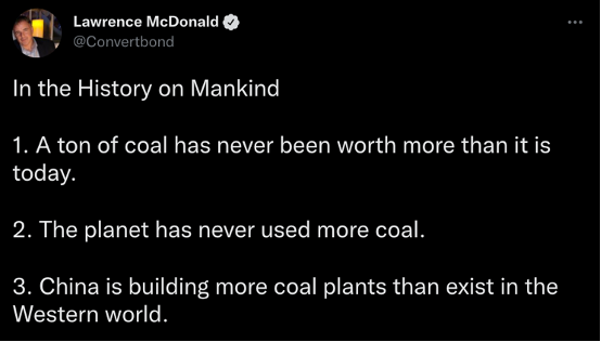 Enaka zgodba se je nadaljevala v 2022. Premog ni bil samo ena izmed najboljših investicij v smislu surovin, ampak CELOTNEGA marketa. Zelena agenda "bites the dust":