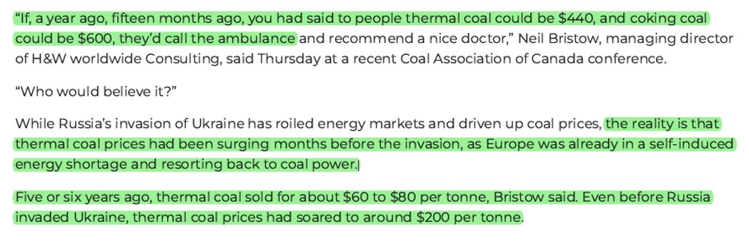 No, zakaj je torej cena premoga na "all time high", če je tako nepomemben?
