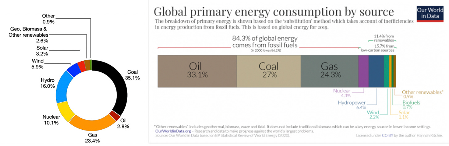 Glede na druge vire se z njim proizvede 35% električne energije globalno oziroma 27% v celotni primarni porabi energije v svetu.