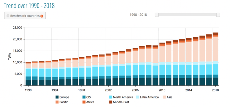 V EU in ZDA je poraba preko let enakomerna, Azija narašča: