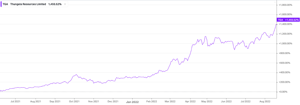 Še en primer za dobro mero: Thungela Resources ltd (premog v Južni Afriki) +1500% donos v 12. mesecih: