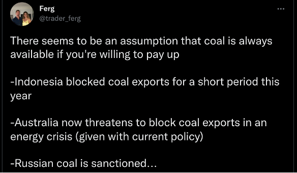 Samo nekaj mesecev kasneje in premog je bil najbolj donosna surovina leta 2021 (že pred vojno!):