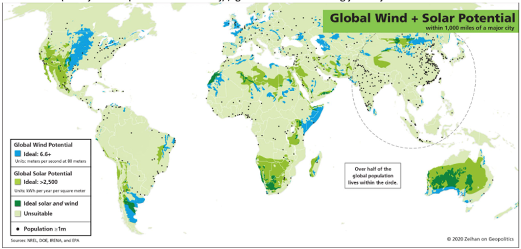 Sledi, da je stvar možna le na območjih z vodo IN ogromno vetra ali sonca. Po navadi ni veliko vode ravno tam, kjer je veliko sonca, poleg tega je na teh območjih voda tudi veliko bolj cenjena (saj jo že v osnovi primanjkuje). Prav tako ni dovolj sonca ravno v državah, ki si zelenega prehoda in zelenega vodika najbolj želijo (EU, US). Avstralija ima recimo veliko sonca, ampak malo rek. Slana voda terja dodatno filtracijo, kar poviša stroške. Pomembna je tudi čistost vode (brez delcev). Eventuelno je možno vodo transportirati, ampak se povišajo stroški. Offshore wind farme pa so za tako stvar rentabilne le tam, kjer je res zelo veliko vetra (glej spodaj).