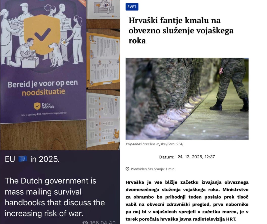 Smo v hladni tretji svetovni vojni. Panamski prekop, Greenlandija, Volitve v Argentini, Boliviji, Čilu, sedaj še Venezuela, situacija v Iranu, eskalacija v Rusiji, koridor Kambodža/Tajska, dogajanje Taivan, od 2022 finančne sankcije, repozicioniranje v Afriki, trade vojne s Kitajsko (redke kovine), itd. Sedaj oboroževanje EU in obvezni vojaški roki (Hrvaška, Francija, Nemčija, …). Vse to so povezne stvari med ZDA, Kitajsko in Rusijo, ki so v hladni vojni. Vprašanje je le kdaj bo ljudem jasno, da je vojna in da ni več hladna.