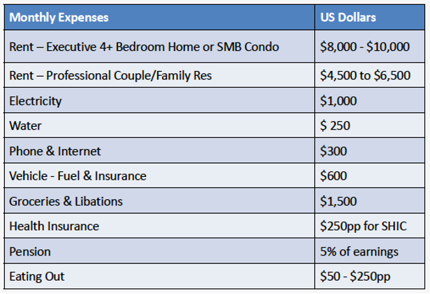 Visoki stroški življenja so tako prikriti davek, ki ga plačaš, če si tam. Ko kupiš hišo moraš plačat 8% davka državi, to je edini realni davek, ki ga imajo izven uvoznih davkov. Drago je tudi zavarovanje zaradi hurikanov in monopola, za hišo cca $25k letno! Izven tega pa je vse 0%, tako da fiksni stroški so visoki, ampak če printaš dober dnar je to nepomembno.