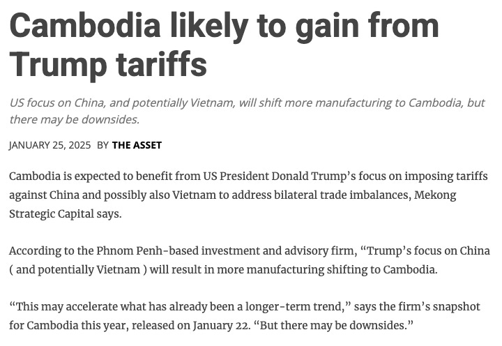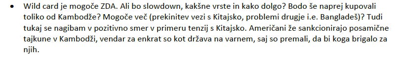 Skratka, vsi makro dejavniki iz Kambodža reporta še vedno stojijo, tarife za enkrat nimajo posebnega vpliva, z izjemo globalnega kaosa, ki so ga povzročile (kar negativno vpliva na že tako šibko globalno ekonomijo). Še vedno sem mnenja, da so trenja ZDA-Kitajska, Kitajska-Taivan verjetno pozitivna za Kambodžo, če uspejo igrati obe strani, kot so to v preteklosti, kar kažejo tudi s trenutnimi pogajanji (v rit lezejo Kitajski in ZDA). In želja po večji vpletenosti ZDA v Kambodžo je verjetno pozitiven znak. Tudi Indija ni več tako izi izbira: