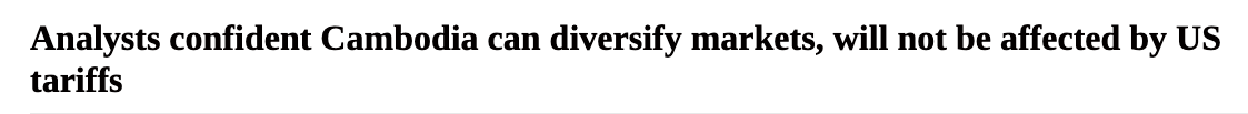 Tarife znižane na 19%, kar je enako ali manj od sosedov. Velika zmaga, ekonomija gre s polno paro dalje. Postalo je jasno, da ZDA ne želi ohromiti Kambodže, ampak jo pridobiti na svojo stran. Bullish. Spet lahko igrajo obe strani.