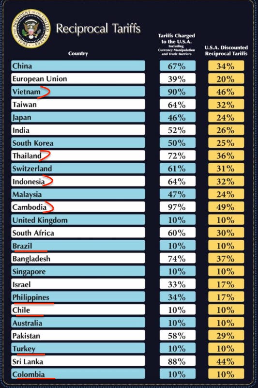 Ker se nobena župa ne poje tako vroča kot se skuha, sem počakal dva tedna in situacija je postala že dosti bolj jasna, od takrat še veliko bolj. S pavzo tarif za 90 dni, s 125% tarifo na Kitajsko, s planiranimi sestanki s posameznimi državami, z nesmiselno kalkulacijo in teorijo že v štartu, s protesti ameriških multinacionalk v Kambodži in celo manjšim ogorčenjem nad tarifami v US, je Trump deloma spremenil ploščo in postalo je jasno, da je želel le boljši deal za ZDA in večji vpliv v posameznih državah, kot ga ima Kitajska, kar je Kambodži tudi namignil (od takrat so imeli dva sestanka).