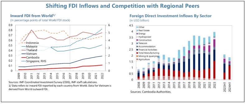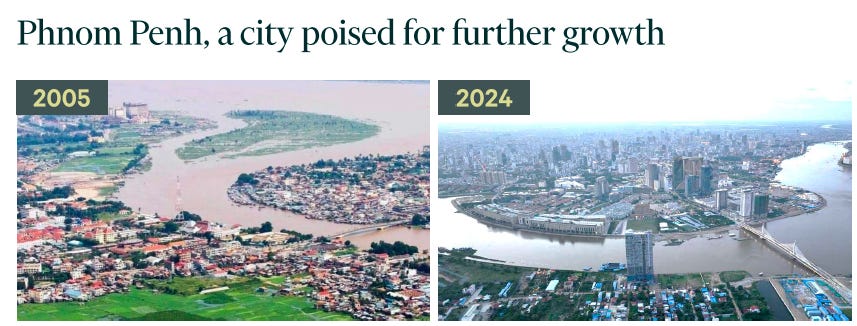 Kambodža je frontier market v smislu razvijajoče se industrije. Ker pa imajo USD valuto, je tudi varni pristan za Kitajce, ki želijo shraniti prihranke/kapital izven kontrol kapitala doma. Posledično je velik deležnik nepremičninski trg v Kambodži, kar se bo v prihodnosti še povečalo, saj Kitajci ne bodo več toliko investirali v Kanado, EU, ipd. Tudi Rusi so iz UK prešaltali na Tajsko, ipd.