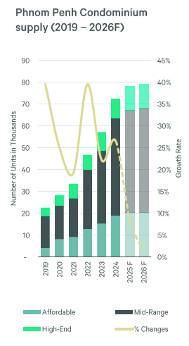 Cena nepremičnin v Phnom Penhu je med 2004 in 2007 eksplodirala iz 400$/m2 na 1550$/m2. Takrat je bila Južna Korea velik investitor, ki je bil prizadet v 2008 krizi in posledično so tudi nepremičnine v Phnom Penhu padle za 40-50% na 850$/m2 v 2010. Od 2010 do 2019 so cene ponovno rastle in dosegle 3250$/m2.