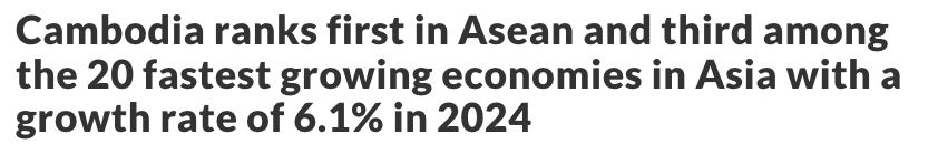 Kambodža je že mnogo let (desetletij) med top najhitreje rastočimi državami na svetu (in še naprej bo predvidoma tako).