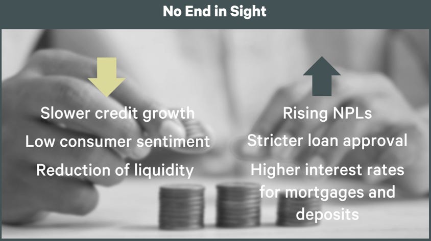 Posledično so banke v 2020 in naprej zategnile pas in ustavile večino novih kreditov, v 2022 pa še višje obrestne mere:
