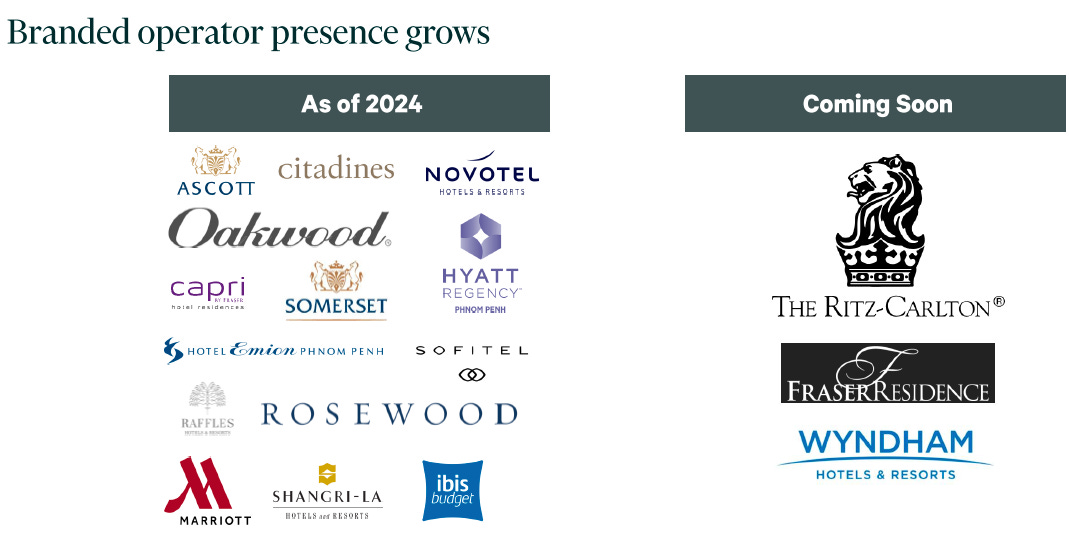 Trenutno s <2.5mio ljudmi (v primerjavi z 9-10mio v BKK in HCMC). Stopnja urbanizacije le 25% v Kambodži (+50% sosedje), kar pomeni da 75% ljudi ne živi v mestih, kljub temu da le ta ustvarijo 70% BDP. Projekcije so 6mio ljudi v Phnom Penhu do 2035, kar je bullish za ekspanzijo in redkost (tako nizka urbanizacija).