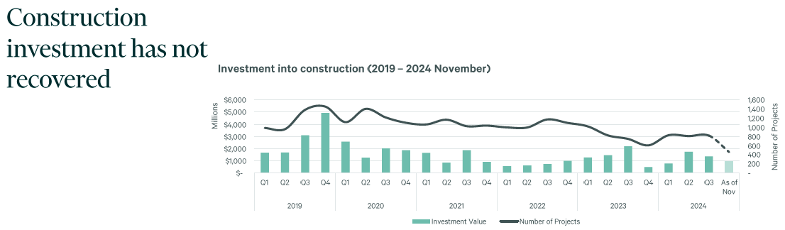 Vsi največji investitorji z izjemo Južne Koreje so v 2024 prenehali z novimi investicijami, ker imajo probleme doma (ZDA, Japonska, Kitjska):