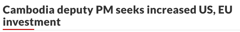 Poleg tega so ena izmed držav, ki bi verjetno pridobila tržni delež v primeru trenj ZDA-Kitajska. Podobno kot sta Indija in Saudska Arabija poceni kupovala olje od sankcionirane Rusije in preprodajala po višji ceni na Zahod, bo z industrijo v Kambodži. Ekonomska vojna s Kitajsko je bullish za nevtralne države kot npr. Kambodža, Vietnam, Indonezija, Brazilija, itd. Vsaka posamična trenja/problemi okoliških držav pa prav tako pripomorejo k večjem tržnem deležu Kambodže - Bangladeš, Myanmar, ipd.: