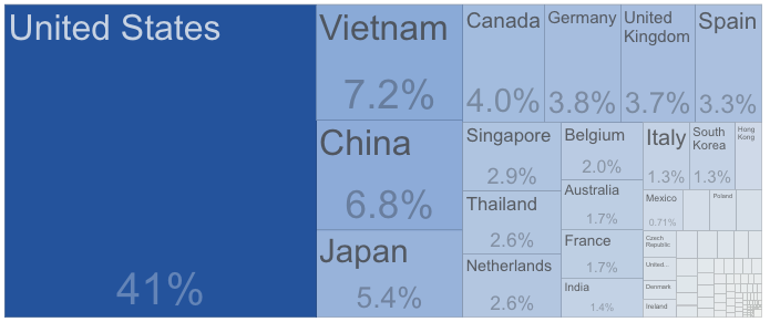 Največji trgovalni partnerji so Kitajska, ZDA in Vietnam.