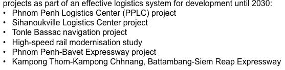 Perhaps most notable is a Japanese-led expansion that could more than triple the capacity of the international deep sea port of Sihanoukville, the sole facility of its kind in Cambodia.