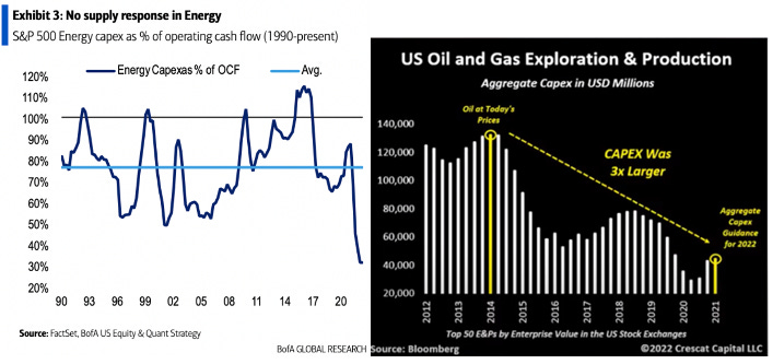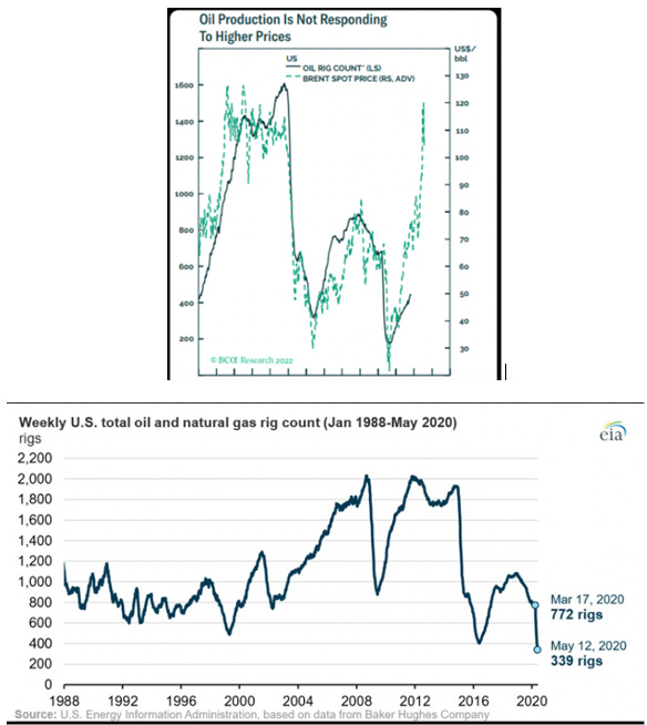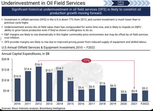 Naj samo omenim, da je trenutni AISC (all in sustaining cost) sodčka olja povprečno 60-65$ in 2025 futures market predpostavlja olje na 70$. Verjetno tudi kratek spike na 150$ ne bo "incentive price" za povečanje proizvodnje, ker enostavno nima smisla, niti ne dobijo dovoljenj in vse ostalo v zvezi z rafinerijo, itd. Skratka, dodatne proizvodnje še nekaj časa ne bo.