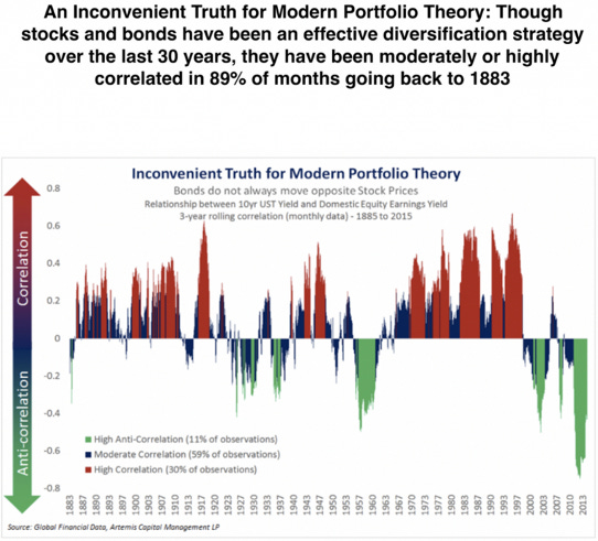 Obveznice padajo skupaj/istočasno z delnicami, kar je zadnjih 40 let nepredstavljivo, pred tem pa normala - glej Dragon portfolio research: