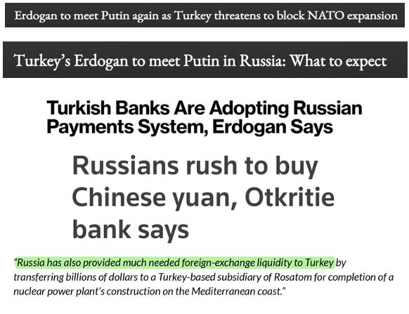 Turčija želi sedeti na dveh stolih, to je kristalno jasno in mogoče jim tudi uspe. Imajo 2. najmočnejšo vojsko v NATO in strateško pozicijo. Erdogan je eden redkih iz "Zahoda", ki sestankuje s Putinom: