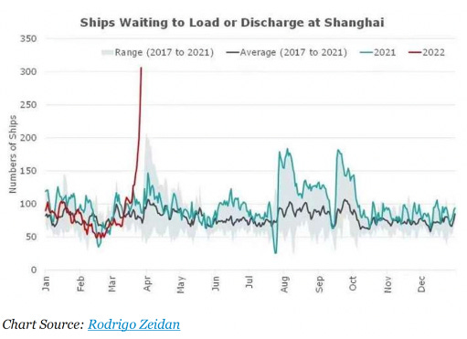 Tudi v kolikor bi znali 3D naprintat ladje, je problem v dobavni verigi (premalo delovne sile, napačne iniciative glede investicij v infrastrukturo, C19 response, itd.). Spodaj primer Shanghai in enako je v LA in drugih večjih portih.