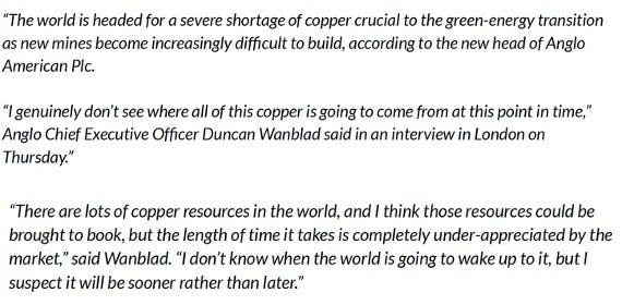 Večina bakrovih depozitov je enako starih kot moj pradeda, poleg tega so v nestabilnih območjih, kjer lahko nemiri, ekonomska slika ali državna politika hitro dodatno okrnejo ponudbo.