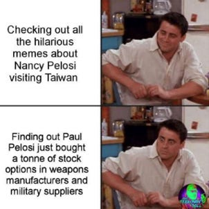 V kolikor se bo Kitajska počutila "ogroženo" (vam je kaj znano?), zaradi ameriških sil/veleposlanikov na Taivanu, obstaja možnost resnega konflikta. Podobno kot v Ukrajini bi bila to verjetno proxy vojna, v smislu, da ZDA pomaga Taivanu z dobavo orožja, ipd. in ne direktnim spopadom s Kitajsko (ki bi prav tako verjetno samo posredno delala embargo).