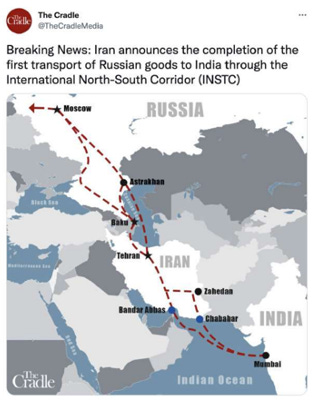 Prihranili bodo 20 dni transporta, 30% manj stroškov in pot brez sankcij. Iran bo odvisen od ruskih surovin in pretoka, Rusija pa bo odvisna od transportne poti, kar pomeni... da bo imela interes branit Iran v konfliktu z Izraelom.