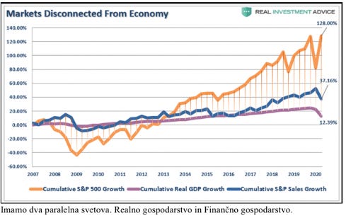 Manjša vrednost finančnega gospodarstva pomeni manj trošenja, kar pomeni manjši BDP, kar pomeni manj pobranih davkov, kar pomeni še več potrebnega zadolževanja, itd.