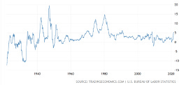 Primer spodaj (rdeče obarvano, inflacija nad ključno obr. mero, nazadnje v taki meri v 1940ih):