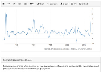 Spodaj prikazana nemška inflacija proizvajalcev (ne potrošnikov) kaže še slabšo sliko. Bodo cene prevalili na nas ali sprejeli nižje marže? Enkrat lahko ugibaš... *note 2022: to se je tudi zgodilo (inflacija 10% trenutno)