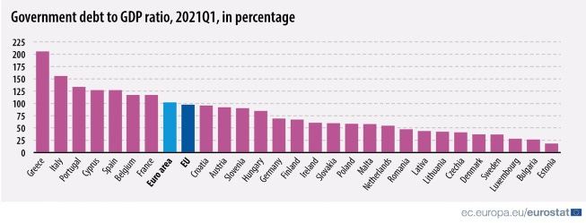 Dolg je dosegel 100% BDP-ja v EU in 130% v US.