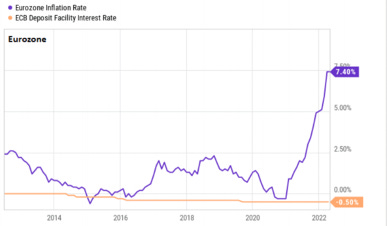 Skratka, na eni strani ne morejo nižati obrestnih mer, ker so že skoraj na 0% (nekje celo -0.5%, recimo Nemčija), na drugi strani pa ne morejo zvišati obrestnih mer (za ukrotitev inflacije), ker bi to sprožilo nezmožnost odplačevanja dolga.
