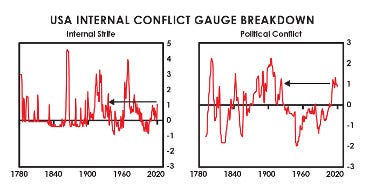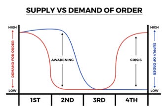 Po krizi oziroma tik med krizo je red v družbi visok in tudi želja po redu visoka. Ljudje želijo nove voditelje, ki so sposobni zasnovat nov svet, ki jih bo popeljal iz krize. Skladno s tem so se pripravljeni odreči nekaterim svoboščinam in želijo več centraliziranosti, avtoritete.
