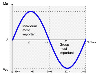 Dalo bi se diskutirati o zgornjih letnicah in ostalem, ampak graf samo toliko za prikaz, kako se gibljemo kot družba -> v miselnih in posledično političnih ciklih.