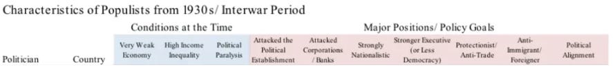 Značilnost populističnih vodij je napad na "sistem/elito", nacionalizem (narodne koristi pomembnejše od vsega ostalega), zategnjena migrantska politika, avtoritativnost, ...