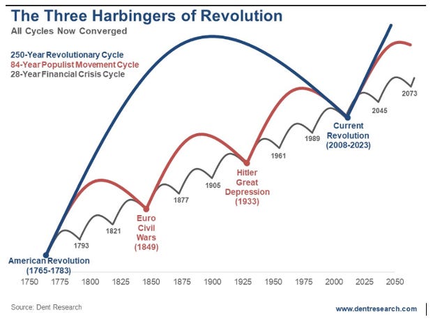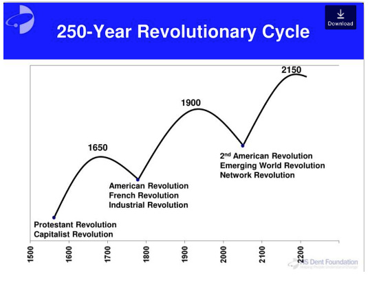Skratka, sem zašel. Ne pravim, da so vse zgornje informacije korektne, je pa treba priznati, da so nekatere stvari dokaj logične in so se celo odvile. Še en primer v zvezi z 250 letnimi revolucijskimi cikli, Harry Dent z modeli iz 2010:
