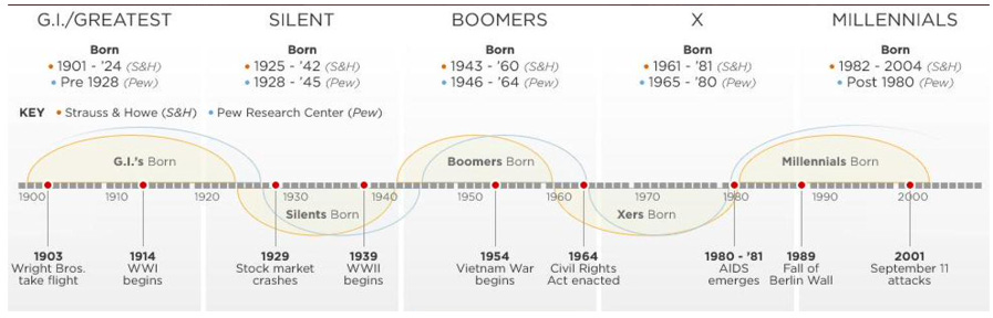 Vsaka generacija traja cca 20-25 let in ima svoje specifike, ki odražajo obdobje v katerem je odrasla. Svet pa se odvija v ciklih, prav tako kot narava. Spomlad, Poletje, Jesen, Zima. Celoten cikel je sestavljen iz štirih generacij/obdobij, traja torej cca 80-90 let.