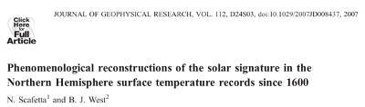 "On the other hand, if a secular temperature showing large preindustrial variability is adopted, such as MOBERG05, the climate is found to be very sensitive to solar changes and a significant fraction of the global warming that occurred during last century should be solar induced. If ACRIM satellite composite is adopted the Sun might have further contributed to the recent global warming."