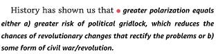 S tem dobijo inštitucije več moči, demokracija počasi zamre. Ljudje se začnejo povezovati. Bolečina narašča (socialno, ekonomsko, politično, ...), dokler ne doseže vrhunca, kjer ima velika večina dovolj in star sistem se sesede pod svojo težo.
