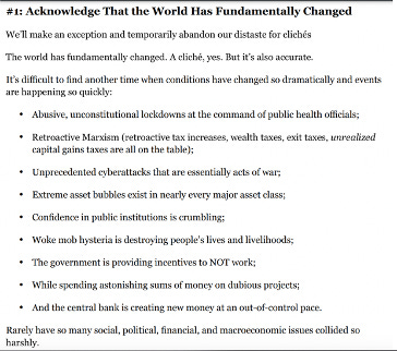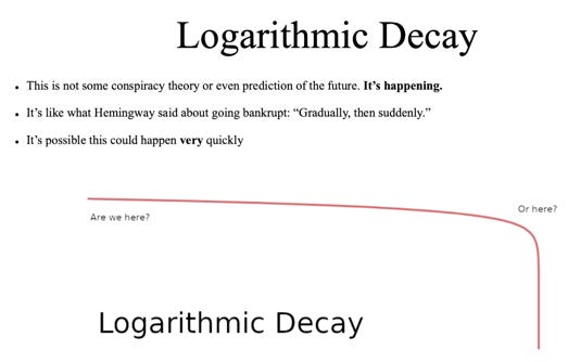 Primarno me skrbi mentaliteta ljudi, saj iz nje izhaja vse ostalo. Zadnjih deset let je bilo težkih za povprečnega človeka, kar ima paralele z depresijo 1930, ki je utrudila psiho posameznika in s tem omogočila "mass formation psychosis", kar je med drugim privedlo do možnosti vzpona Hitlerja.