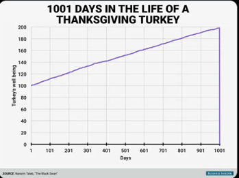 V kolikor se vam še vedno zdi, da to danes ni mogoče, naj spomnim, da tudi puran nima razloga za strah, če bazira svojo realnost samo na svojih prejšnjih 1000ih dneh življenja: