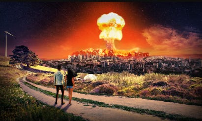 Večina se ne pripravi na tak dogodek (mentalno, operativno), kljub recimo grožnjam Rusije, ker verjamejo, da bi bilo v tem primeru: "itak vsega konec". Temu seveda ni tako in namesto "hitre smrti", bi nastopili strah, kaos in trpljenje. Vrste pred trgovino, kaos na cesti, zatekanje v kleti brez osnovnih potrebščin, vsakodnevno spremljanje novic v grozi, ...