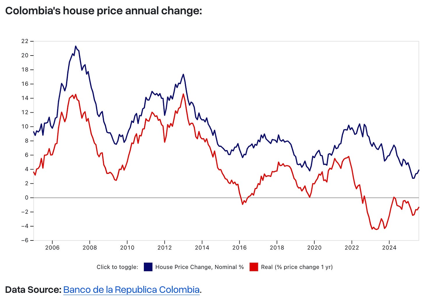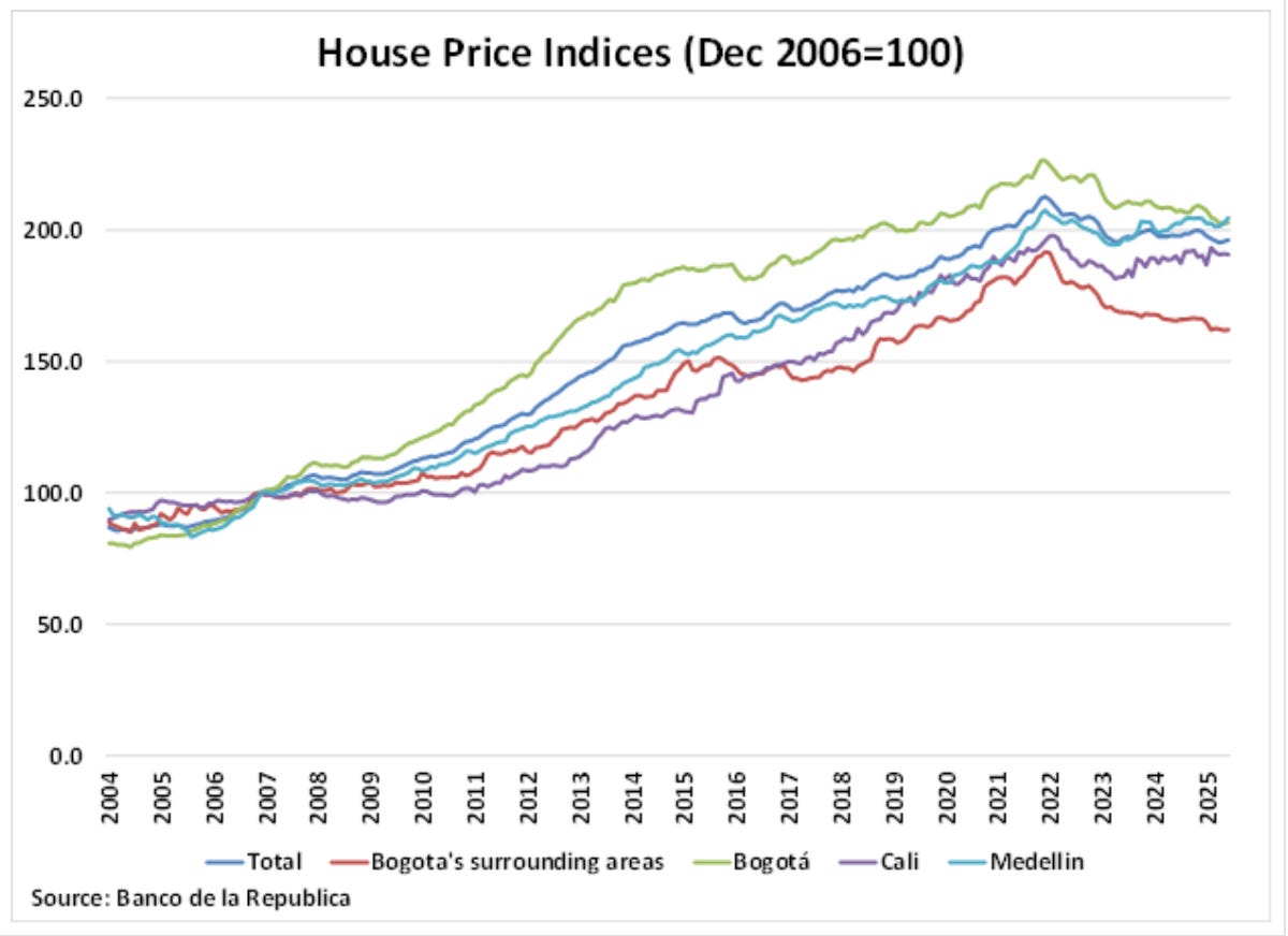Stanovanja v Bogoti so cca 1500 EUR/m2, medtem ko to pade <1000 EUR/m2 v območju kave (Cali, Pereira, Santa Rosa, Manizales).
