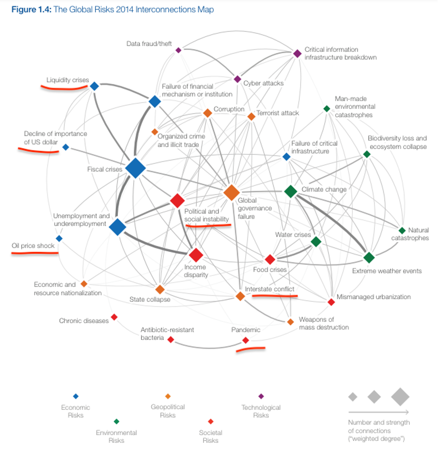 Za konec bi omenil Global risks report 2014 (WEF), ki vsako leto izpostavi verjetnosti za možne ekonomske, geopolitične, socialne, ipd. pretrese.