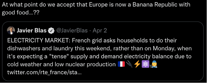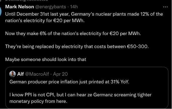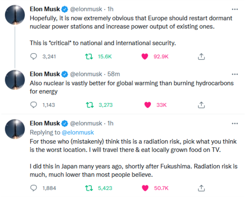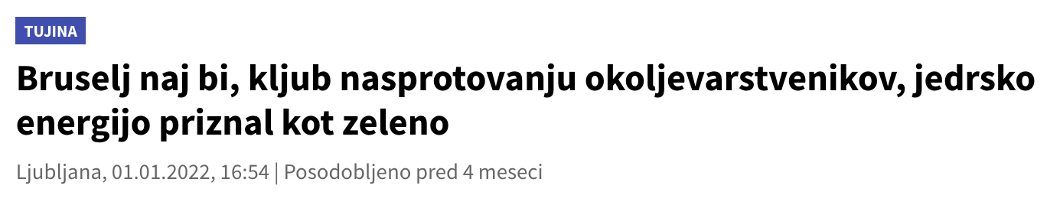 Kakorkoli že, kmalu bo prišel čas, ko bo zelena Evropa spoznala, da se bomo z zmanjševanjem investicij v fosilna goriva, brez novih investicij v nuklearke, vrnili v srednji vek. Takrat bo preko medijev sporočila generalni publiki, da lahko po novem razmišljamo o nuklearni energiji tudi pozitivno.